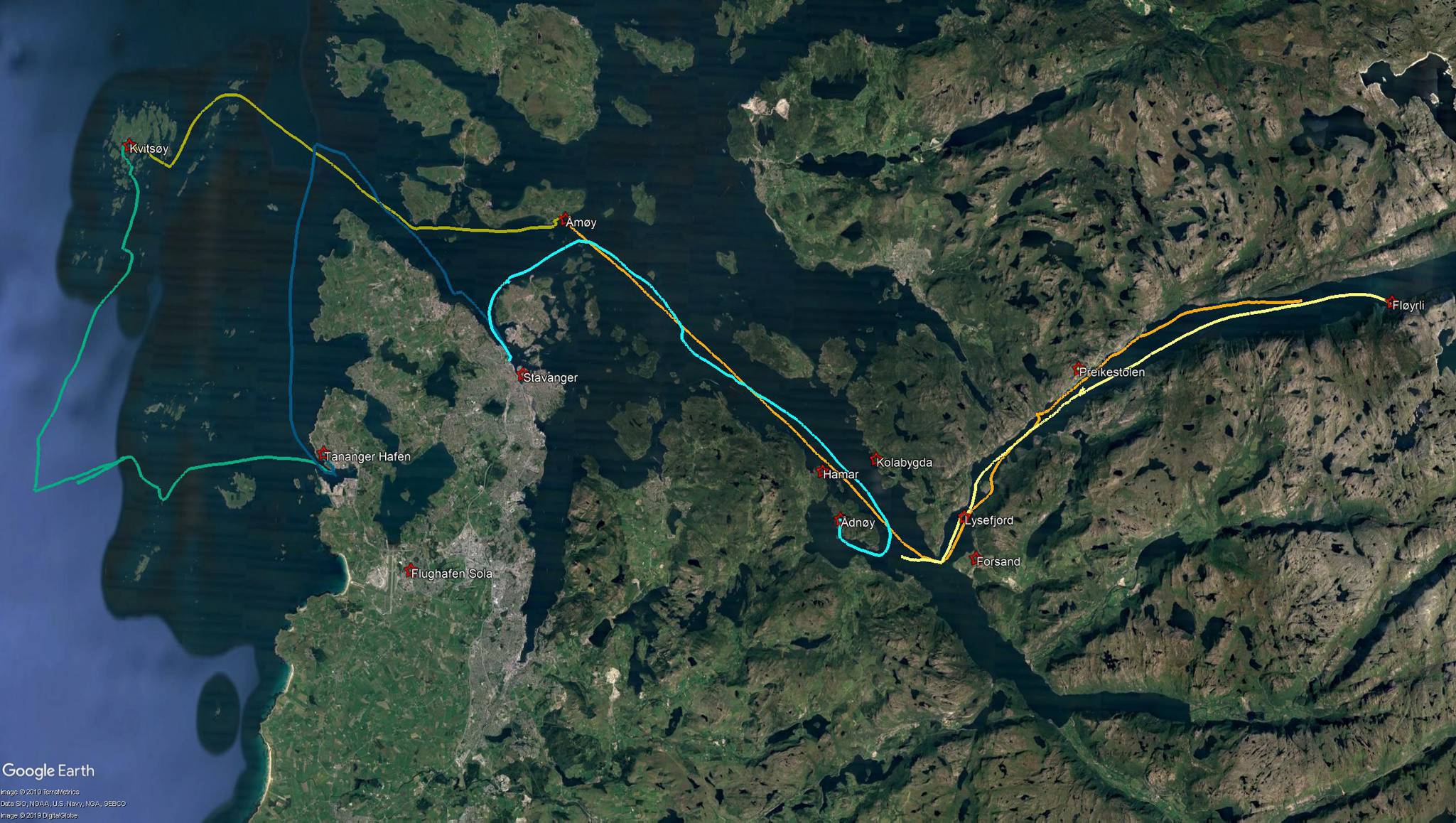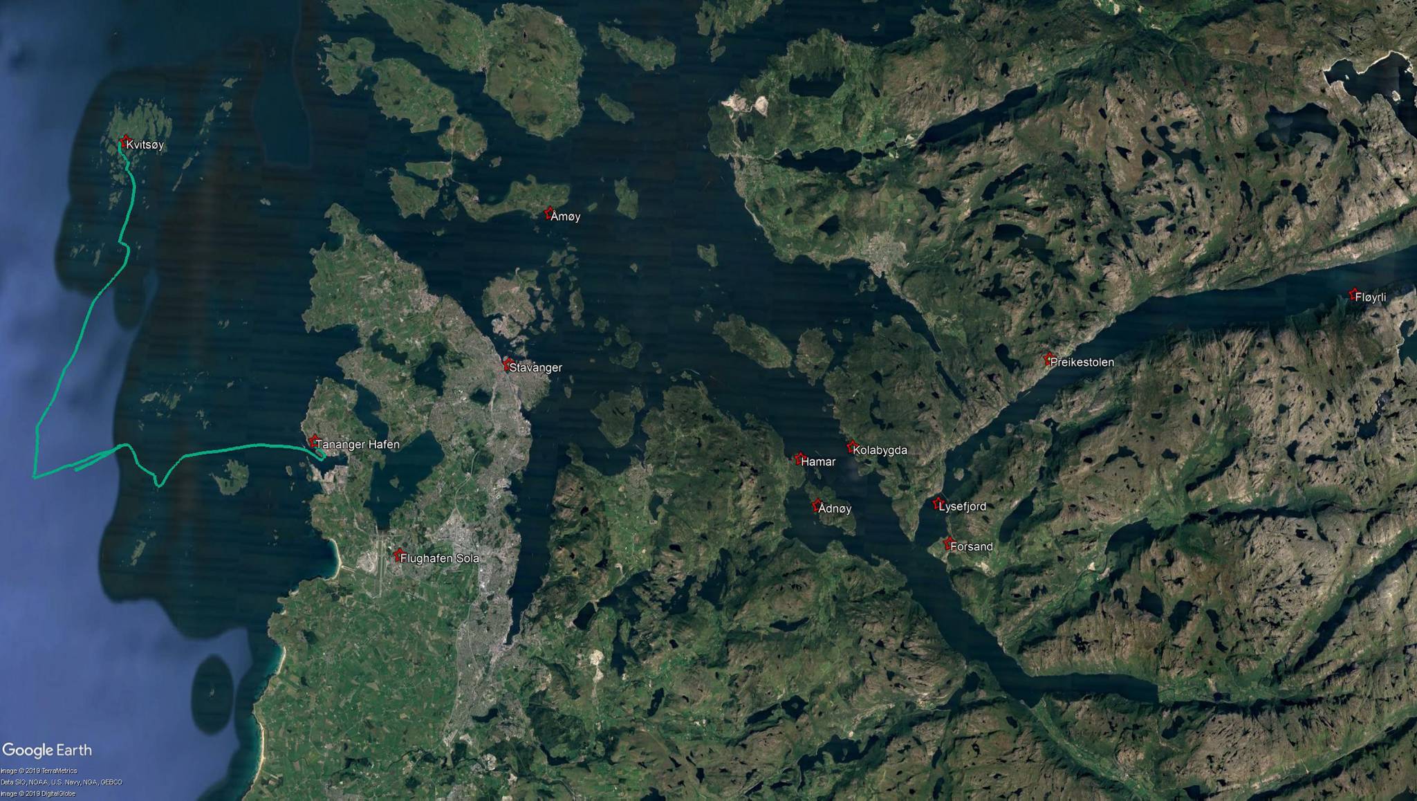 Anfang August 2018 gings vom norwegischen Tananger zunächst auf die Kvitsøy Inseln . In der zweite Etappe segelten wir nach Amøy. Von dort ins Fjordland der norwegischen Küste und schliesslich unter der Brücke durch in den Lysefjord. Unter dem Preikestolen, der höchsten Klippe der Welt gings nach Flørli, unser Ziel im Lysefjord.