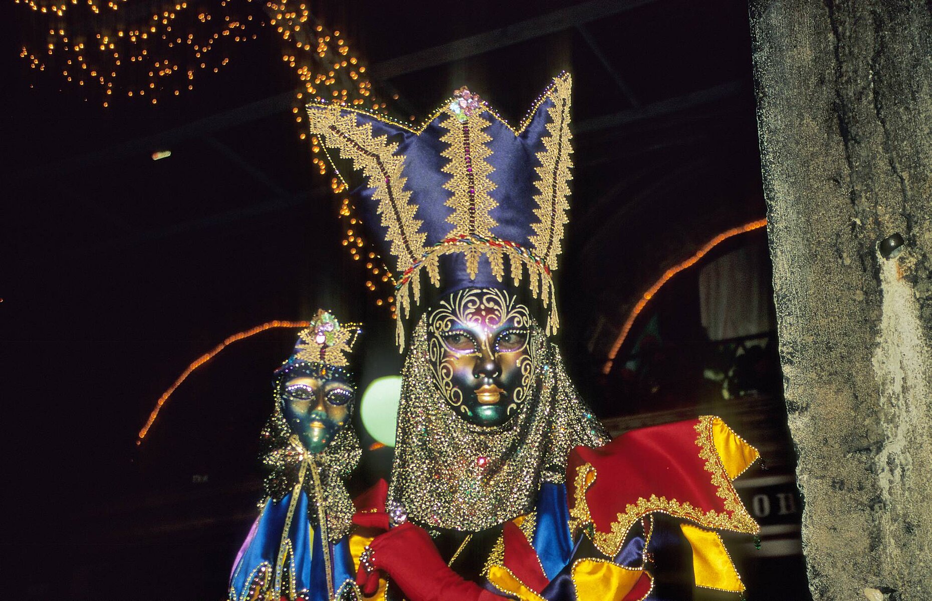 zwei Masken vor dem Campanile