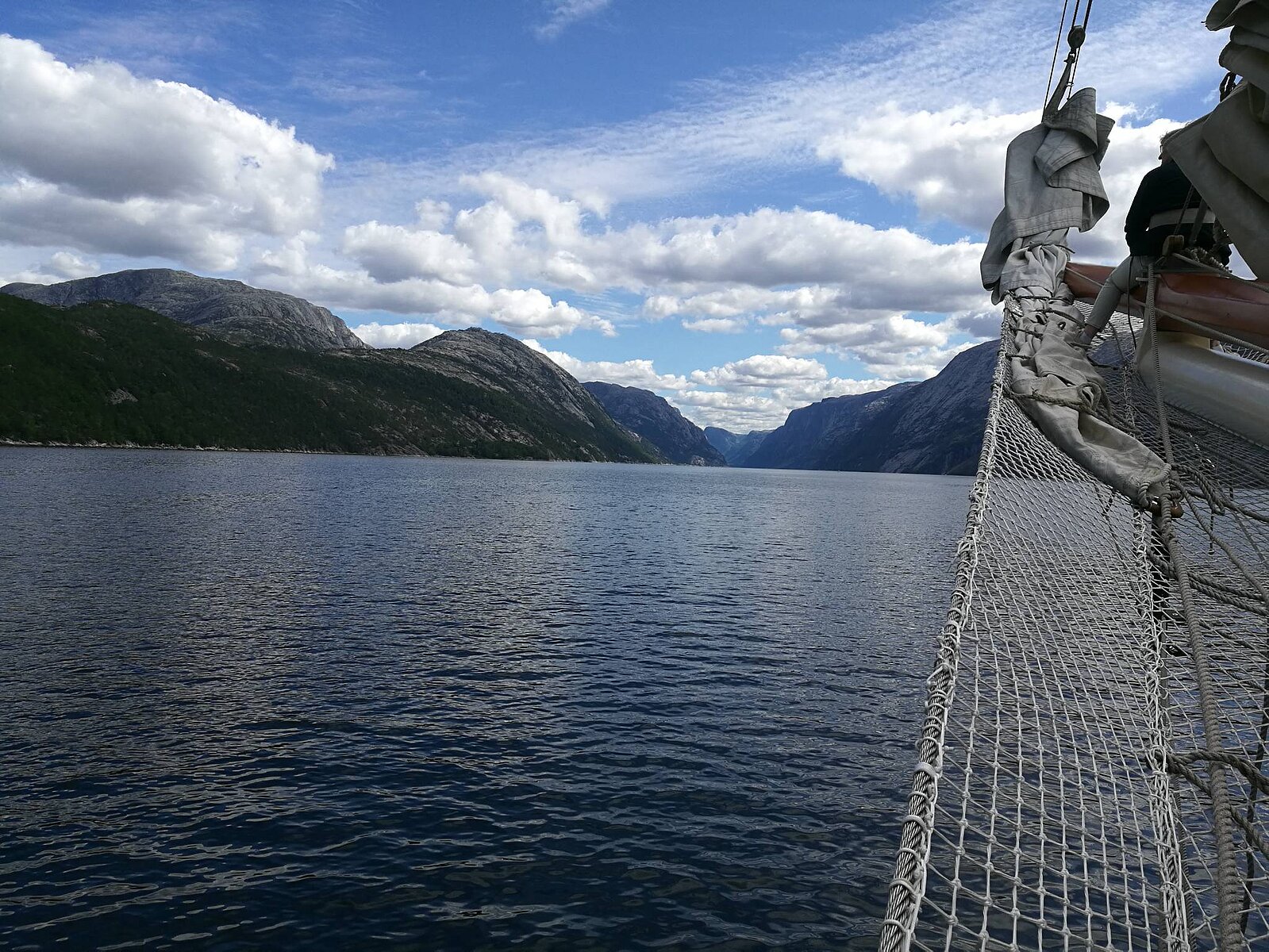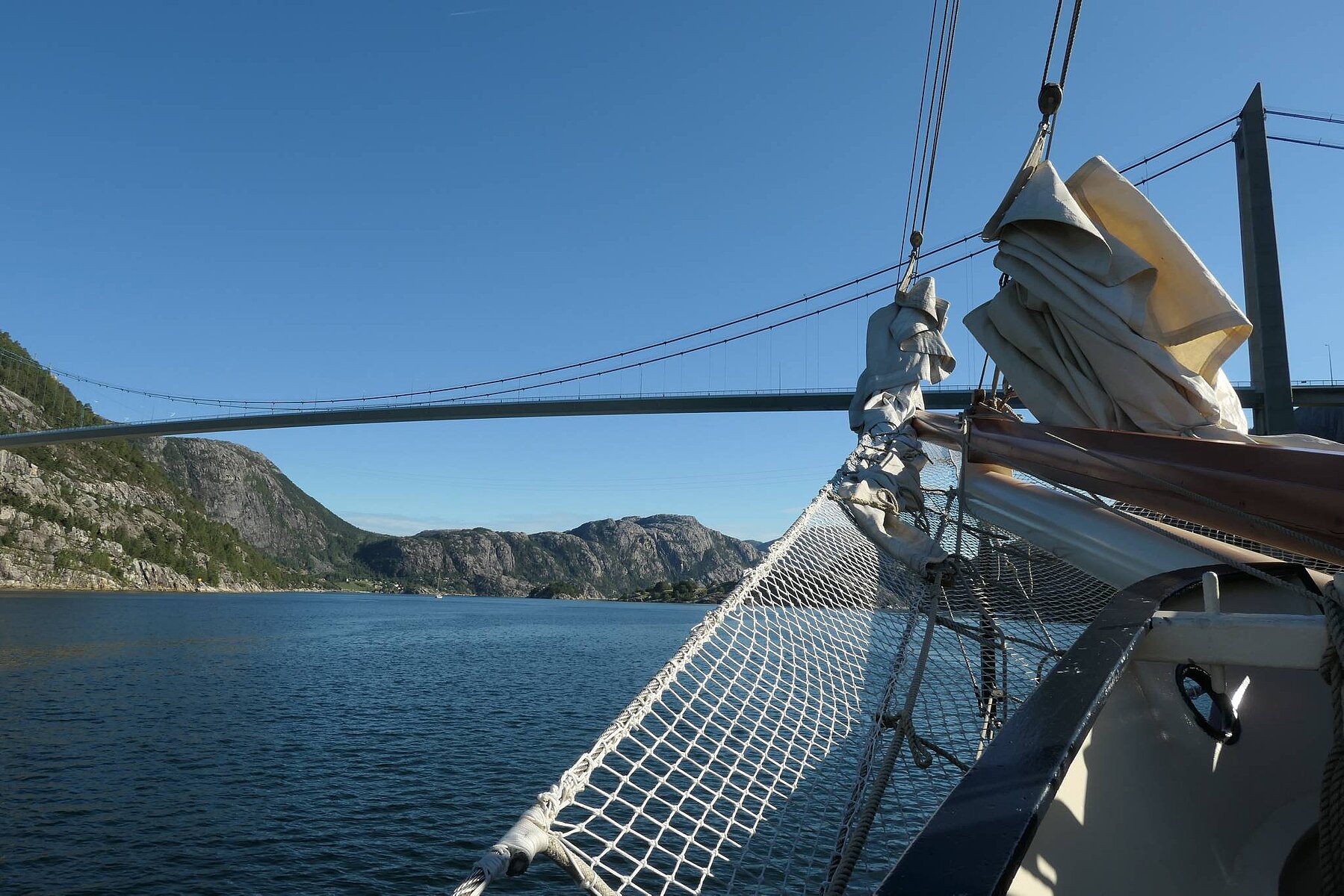 Anfang August 2018 gings vom norwegischen Tananger zunächst auf die Kvitsøy Inseln . In der zweite Etappe segelten wir nach Amøy. Von dort ins Fjordland der norwegischen Küste und schliesslich unter der Brücke durch in den Lysefjord. Unter dem Preikestolen, der höchsten Klippe der Welt gings nach Flørli, unser Ziel im Lysefjord.