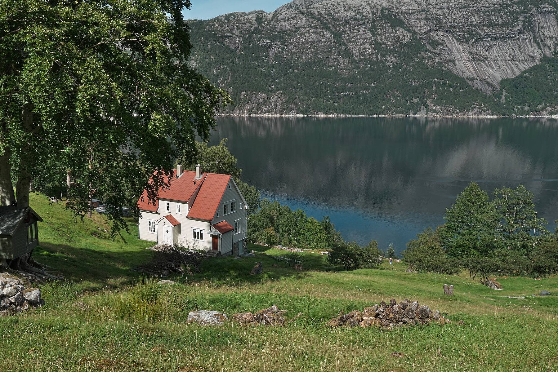 Die Flørlitreppe hat 4444 Stufen und ist einer der längsten Holztreppen der Welt. Die Treppe folgt den Schleusen, die das Wasserwerk am Ufer versorgten. Sie endet am Terneyass Damm. Weit über den Baumspitzen haben Sie eine fantastische Aussicht auf den Lysefjord und in Richtung Preikestolen.