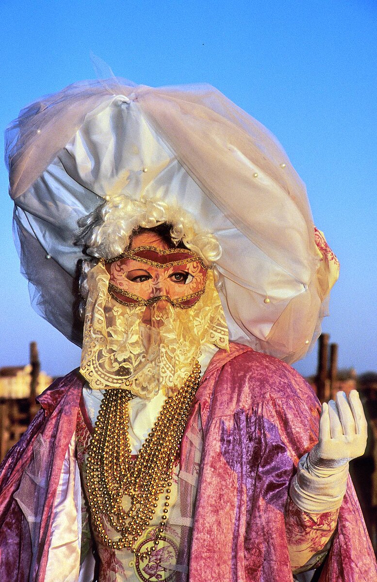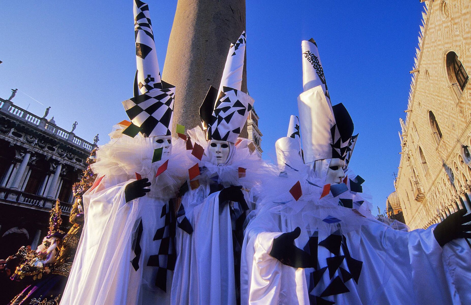 Masken in Schwarz Weiss vor dem Dogenpalast